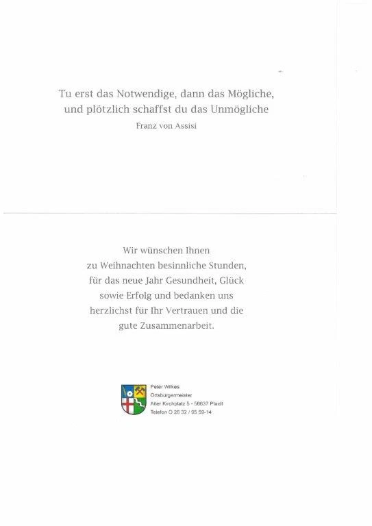 Am Montag, 13. Januar 2025, findet von 07:00 Uhr bis 08:00 Uhr die nächste Sprechstunde in der Ortsgemeindeverwaltung statt. Um telefonische Anmeldung wird gebeten. Gerne stehe ich bei Fragen, Kritik
