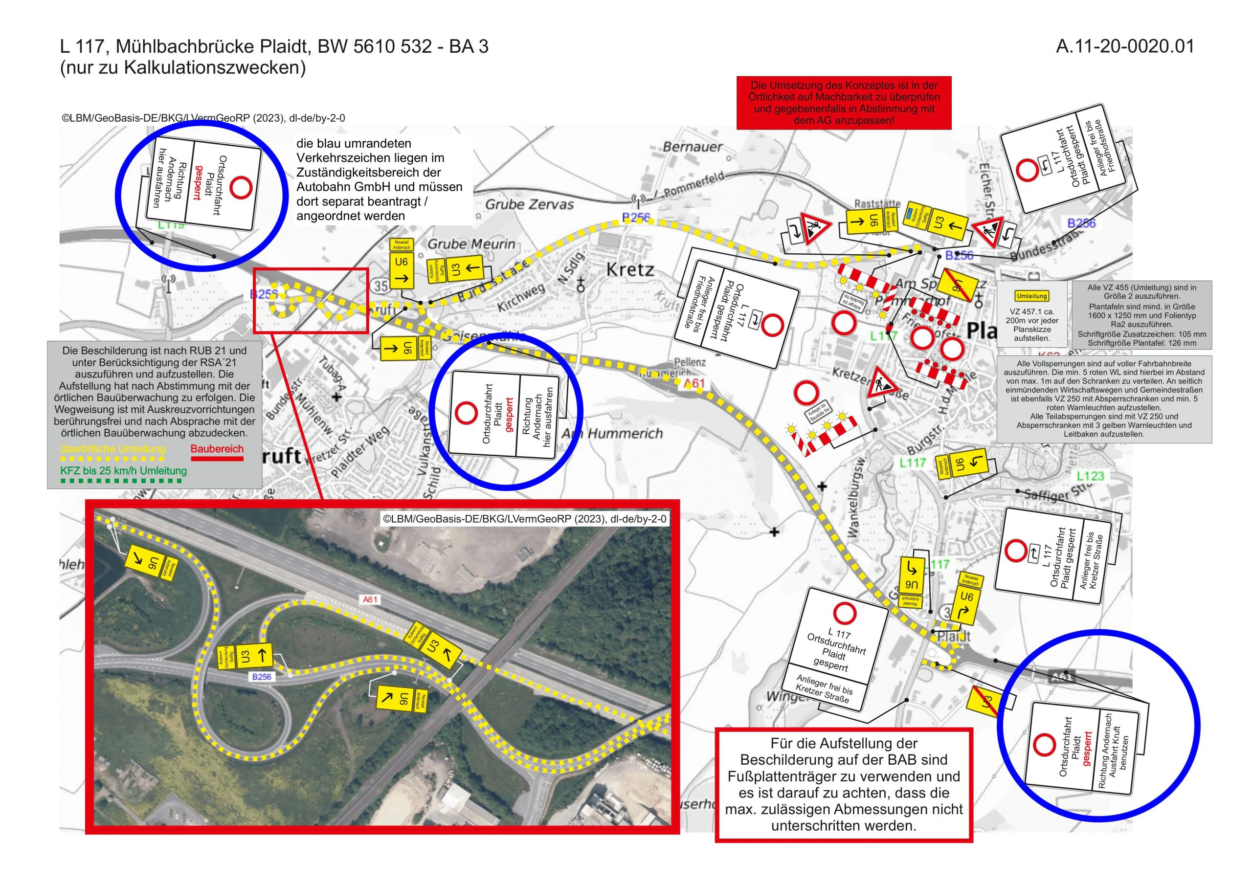Ab 31. März 2025 starten die Arbeiten zur Teilerneuerung der Mühlbachbrücke in Plaidt im Verlauf der L 117. Im Vorfeld der eigentlichen Baumaßnahme muss zunächst der bestehende Überbau vollständig zurückgebaut