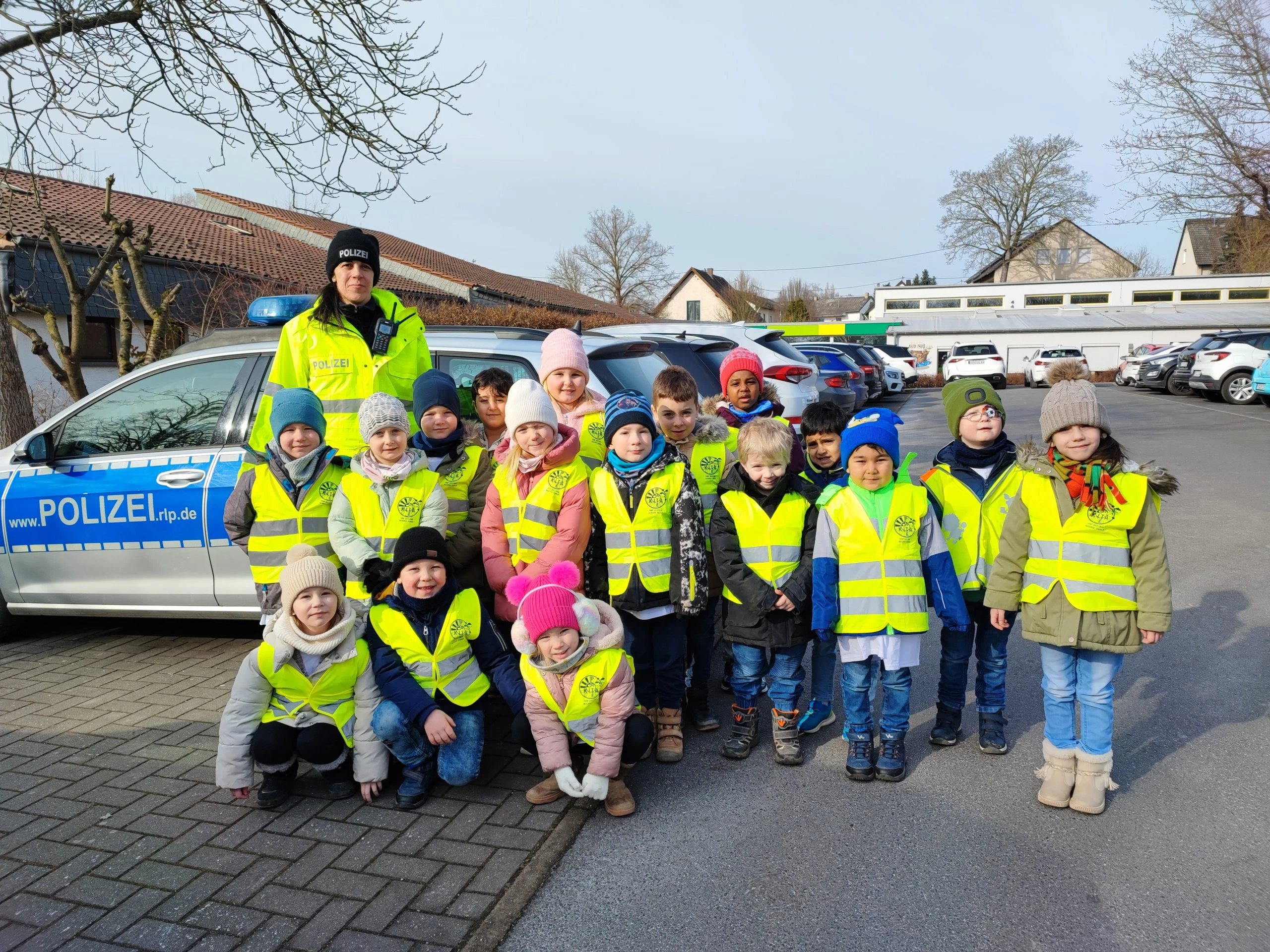 Am 19.02 und 05.03.2025 besuchte Frau Alt von der Polizeiinspektion in Andernach die Vorschulkinder der KiTa „Arche Noah“. In der Turnhalle besprachen die Kinder mit Frau Alt die Funktion der