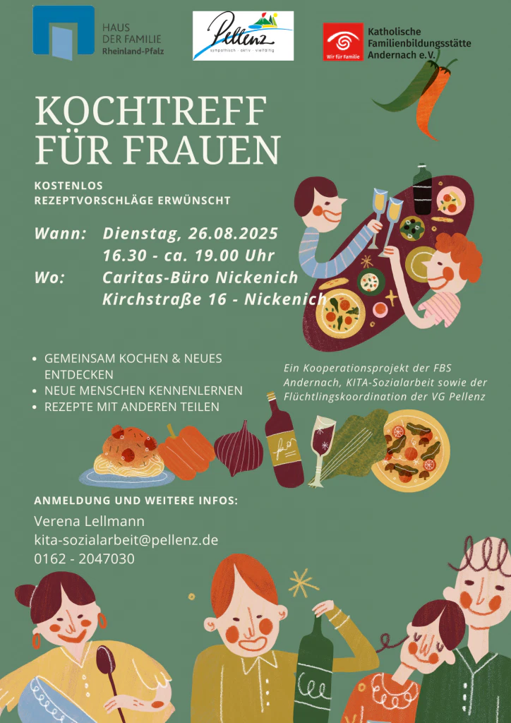 Familienbildungsstätte, Haus der Familie sowie Verbandsgemeinde Pellenz laden alle interessierten Frauen zum gemeinsamen Kochen nach Nickenich ein.