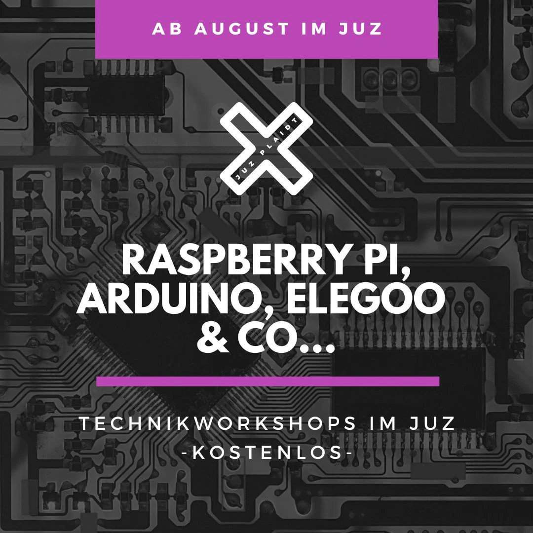 Daher startet im JUZ bereits am Donnerstag, den 11. August ein Schnuppertermin für eine Reihe von Technik-Workshops, in denen sich alles rund um die Themen Raspberry Pi, Arduino, Elegoo & Co dreht. Alex Miltz, Fachinformatiker für Systemintegration und seit Jahren ehrenamtlich im JUZ Plaidt tätig, hat viel Spannendes für euch vorbereitet. Basteln, Programmieren, Ausprobieren…alles richtet sich nach den Interessen der Teilnehmenden. Hierbei ist egal, ob die Interessierten bereits Profi oder Anfänger*in sind oder ob sie noch nie etwas davon gehört haben – einfach neugierig sein und komm vorbei, wir holen alle mit!