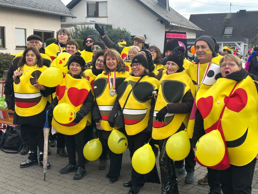 Am Sonntag nahmen die Morangiser Freunde, wie schon seit vielen Jahren, am Plaidter Karnevalszug teil und erfreuten als farbenfrohe Smileys die Zuschauer entlang der 7 km langen Zugstrecke.