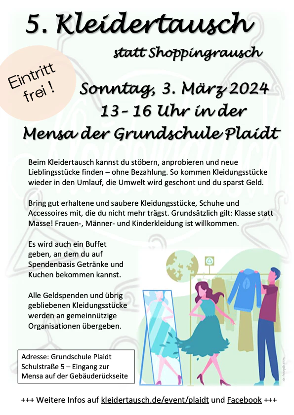 Beim Kleidertausch kannst du stöbern, anprobieren und neue Lieblingsstücke finden – ohne Bezahlung. So kommen Kleidungsstücke wieder in den Umlauf, die Umwelt wird geschont und