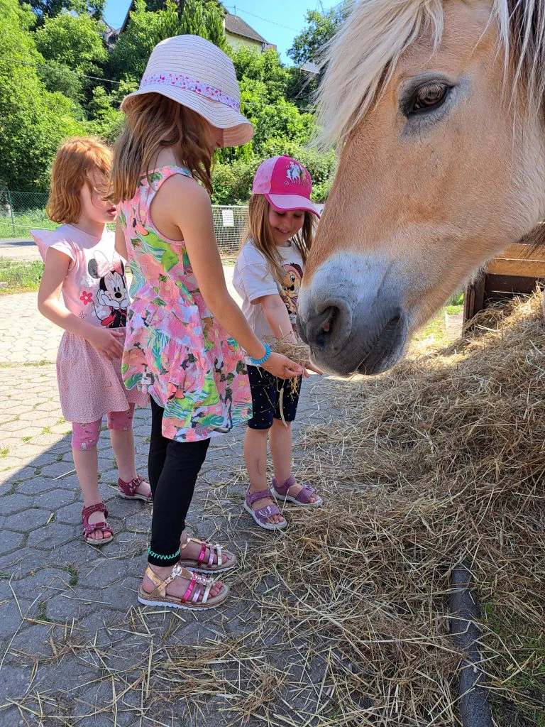 Der Lieblingshof bot mit seiner liebevollen Atmosphäre den perfekten Rahmen für Austausch und gemeinsames Erleben. Statt einfach nur an den Tieren vorbeizugehen, konnten Kinder und Erwachsene sie diesmal ganz bewusst wahrnehmen: mit Heu füttern, beobachten – und dabei ihre „Sprache“, ihre Geräusche und Bewegungen kennenlernen. Ein besonders schönes Erlebnis war die Möglichkeit, auf einem alten Traktor Platz zu nehmen und sich dabei für einen Moment wie ein echter Landwirt oder eine Bäuerin zu fühlen.