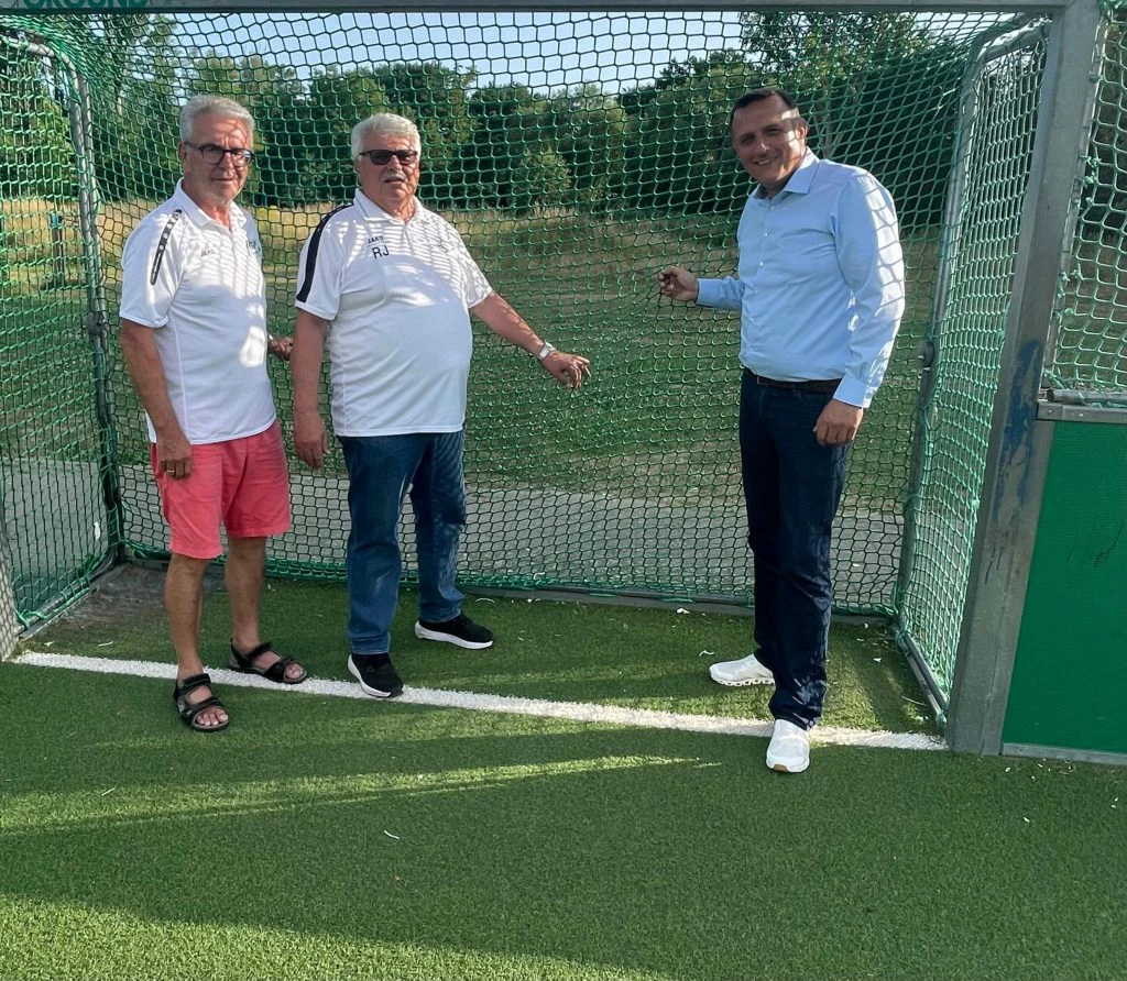 Die Kuratoriumsmitglieder Uli Mertens und Reinhold Jungbluth haben uns die von der Stiftung Jugendfussball aus Plaidt finanzierten neue Tornetze für das Minispielfeld an der Grundschule übergeben.