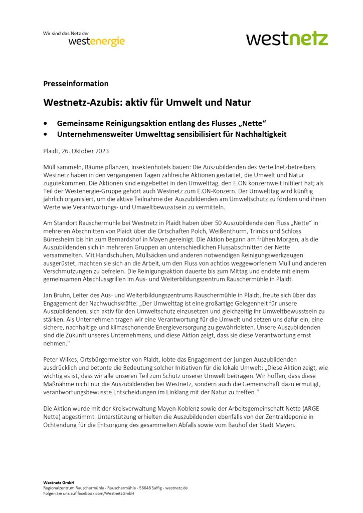 Die Auszubildenden von Westnetz waren im Rahmen ihres Umwelttages auch bei uns im Park unterwegs und haben Müll gesammelt. Vielen Dank hierfür!